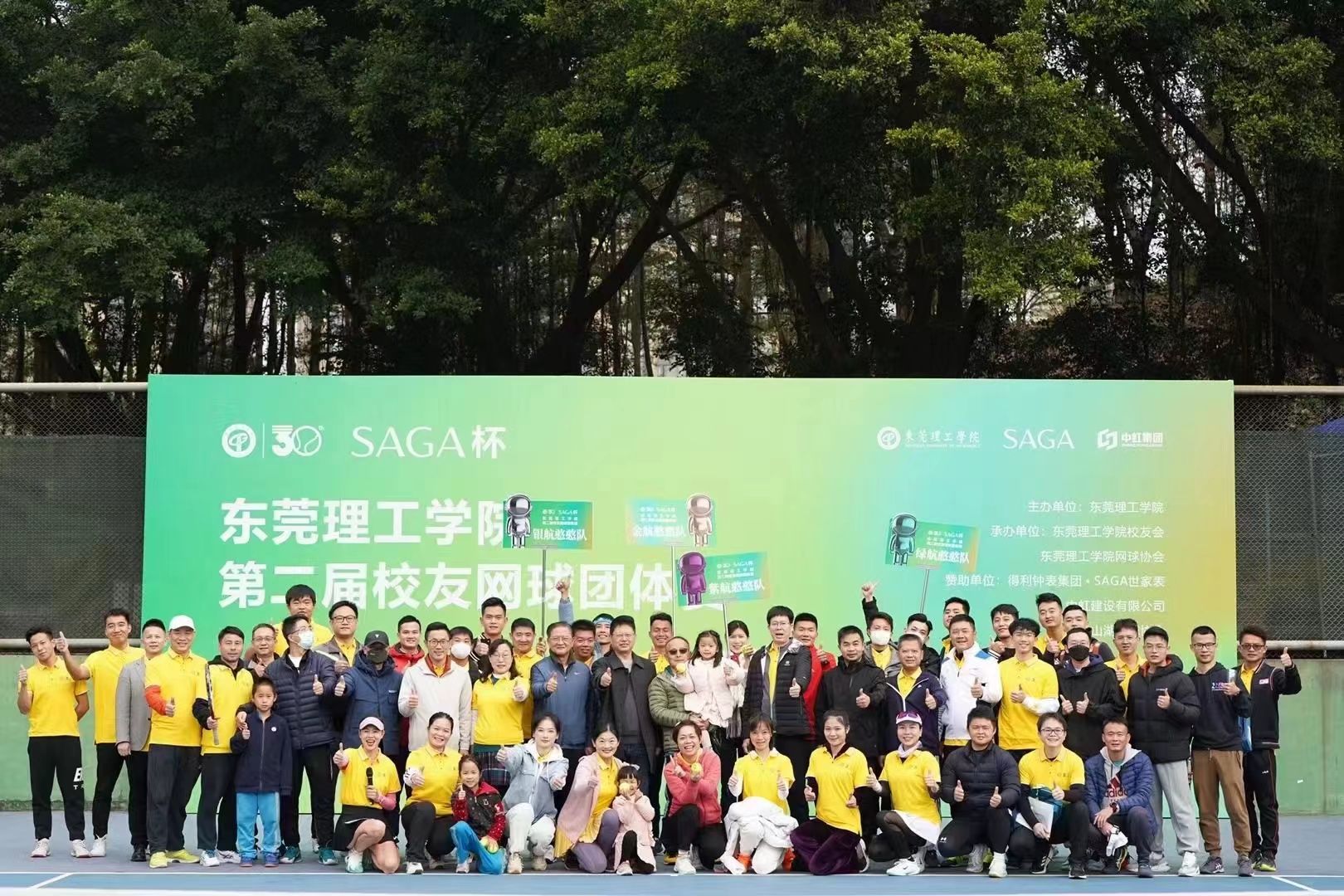 新年伊始,万象更新。1月2日,东莞理工学院“SAGA杯”第二届校友网球团体赛在松山湖校区举行。校党委委员、副校长李文芳,相关职能部门负责人及校友企业得利钟表集团总经理刘仁校友、中虹建设集团有限公司总经理黎晃厚校友等80多名嘉宾、校友参加活动。