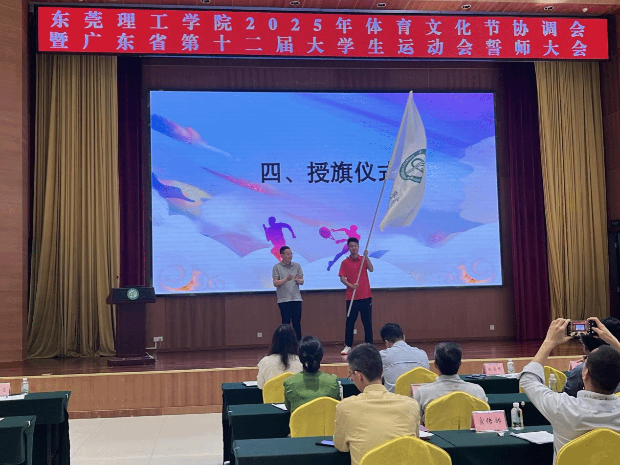 4月21日,学校举行2025年学校体育文化节协调会暨广东省第十二届大学生运动会誓师大会。校党委委员、副校长徐勇军为出征省大学生运动会的代表团授旗并讲话。
