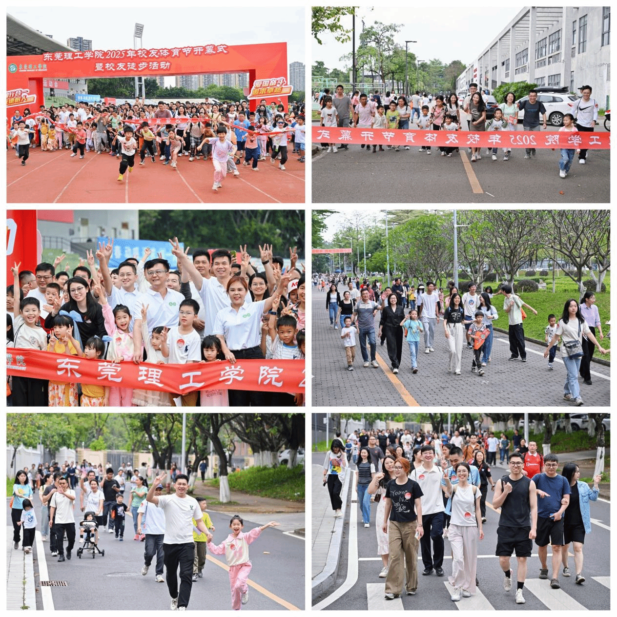 在徒步活动过程中,校友们以运动为媒,畅享体育之趣,体验健康之美。3.3公里的徒步路线里,既有中年校友故地重游感恩母校教诲,勇担时代责任书写“校荣我荣、共生共荣”新篇章;又有青年校友昂首阔步意气风发,以冲刺跑的姿态争当莞工“申博”“更大”战略目标的“助推器”;还有不少校友团结协作、结伴而行,在携手前进的过程中深化同窗情谊、凝聚校友力量;更有充满青春活力的“莞工二代”奔跑雀跃、欢跳追逐,传承着“爱国奋斗、追求卓越”的莞工精神。每一个参加徒步的校友们,无一不是母校三十三年栉风沐雨的建设者和三十三载守正出新的引领者。