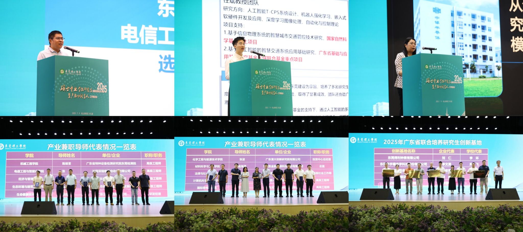 现场还举行了产业兼职导师聘任仪式、广东省联合培养研究生创新基地授牌仪式。学校现有产业兼职导师859人,其中,具有高级职称的329人,具有博士学位的546人。他们将以深厚的行业经验与实践智慧,助力研究生成长。今年,东莞得利钟表有限公司、东莞市宇瞳光学科技股份有限公司、长园深瑞继保自动化有限公司、东莞新能源研究院、广东预立预制构件有限公司等6家单位获批2025年广东省联合培养研究生创新基地。这批创新基地将进一步深化与学校的合作,在人才培养、科研转化等方面发挥示范作用。
