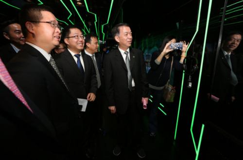 360企业安全集团总裁吴云坤陪同东莞市领导、东莞理工学院领导参观网络安全战车