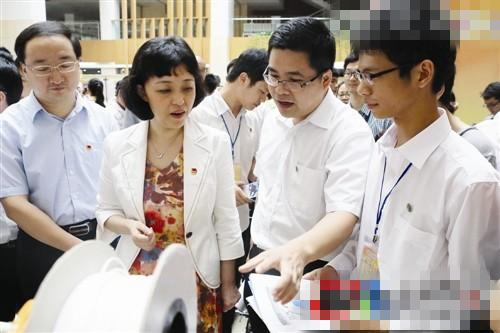■东莞理工学院学生研制的桌面式3D打印机参加广东省第十二届挑战杯竞赛获特等奖。图为团省委书记曾颖如了解该校学生参赛作品莞工供图