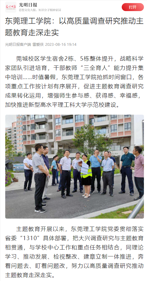 莞城校区学生宿舍2栋、5栋整体提升,战略科学家团队引进培育,干部教师“三全育人”能力提升集中培训……时值暑假,东莞理工学院抢抓时间窗口,各项重点工作按计划有序展开,促进主题教育调查研究成果转化运用,增强师生参与感、获得感、幸福感,加快推进新型高水平理工科大学示范校建设。