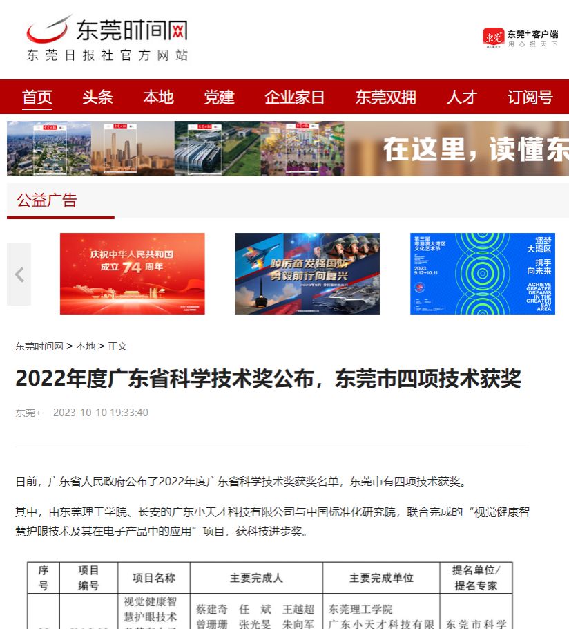 其中,由东莞理工学院、长安的广东小天才科技有限公司与中国标准化研究院,联合完成的“视觉健康智慧护眼技术及其在电子产品中的应用”项目,获科技进步奖。