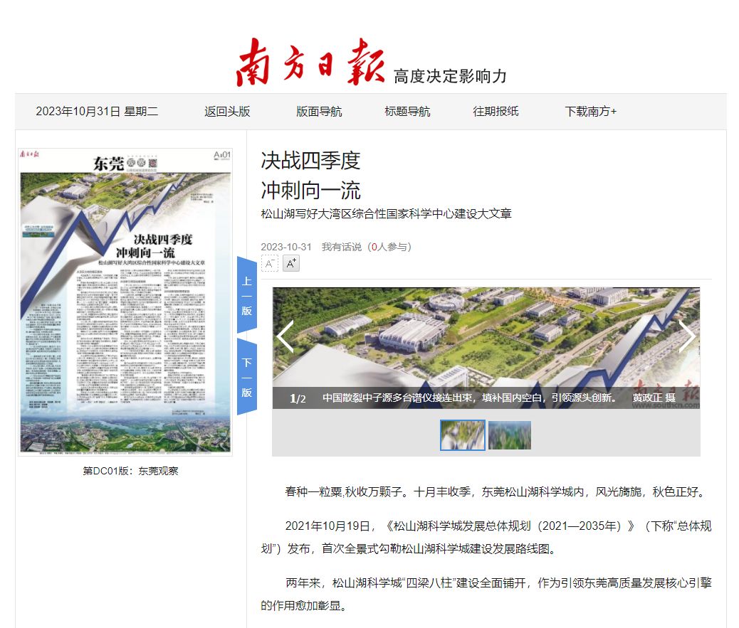 巍峨山下、松山湖畔,世界级大科学装置集群呼之欲出,松山湖科学城科技创新主引擎动力更强劲。