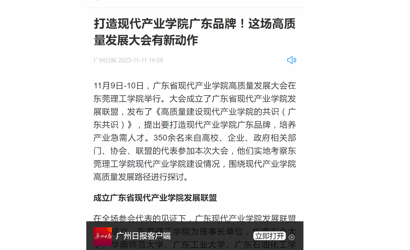 上一篇:【羊城晚报】广东省现代产业学院高质量发展大会在东莞理工学院举行