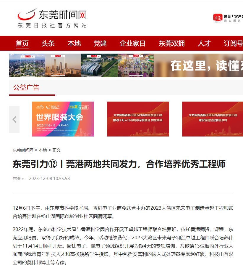2022年底,东莞市科学技术局与香港科学园合作开展了卓越工程师联合培养班,依托香港师资、课程,东莞应用场景,取得了良好的成效。今年,活动继续迭代,2023大湾区未来电子制造卓越工程师联合培养计划于11月14日顺利开班。聚焦电子、微电子领域组织开展为期4天的专项培训,共邀请13位海内外行业大咖面向我市青年科技人才和高校院所学生授课,其中包括安富利的嵌入式处理器专家赵红浪、科技山有限公司的莫伟邦博士等专家。