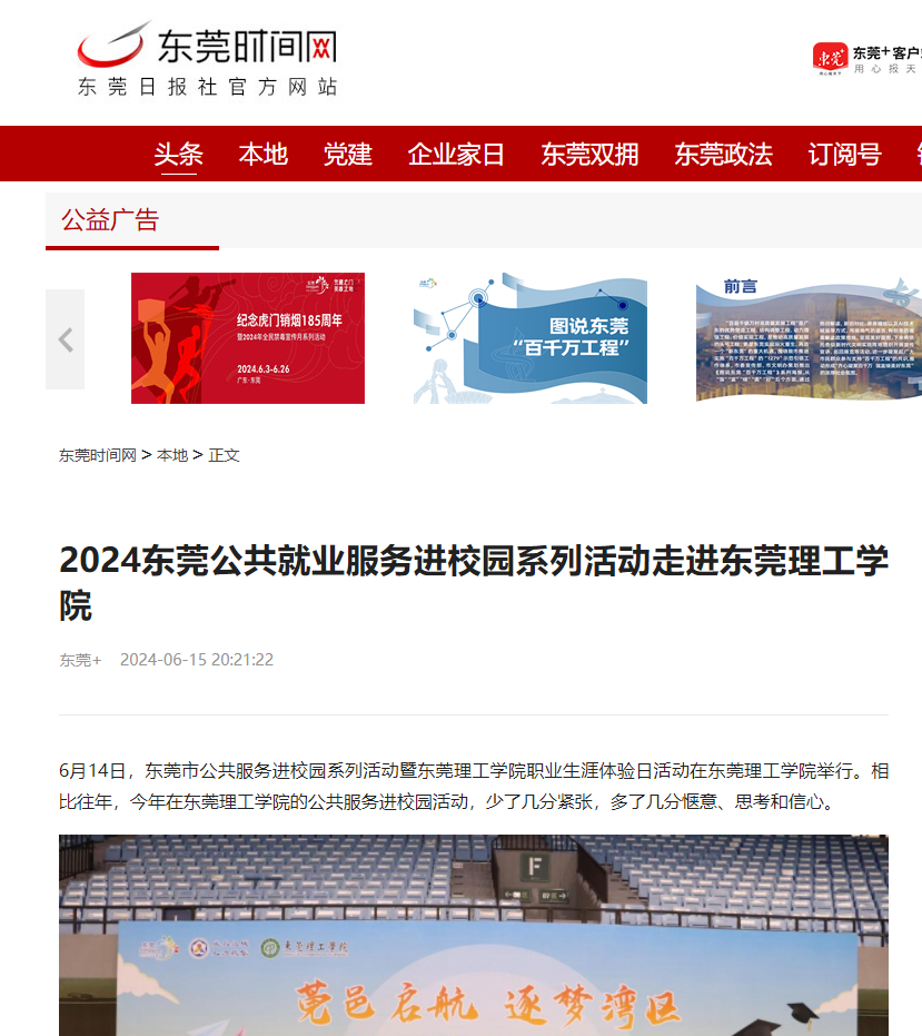 4月28日,东莞启动了2024年公共就业服务进校园系列活动,并同步发布了“1+8+100+N”东莞公共就业服务进校园精准长效服务机制。一马当先的“1”指的是创新打造本土就业品牌——“东莞青年乐业节”,旨在多渠道、多层次、全方位、常态化地为高校毕业生提供精准化公共就业服务,向在莞高校的学子传播解读“乐业”理念,协助学子们树立正确积极的就业乐业观念。