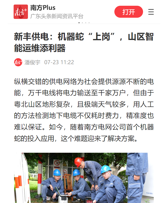纵横交错的供电网络为社会提供源源不断的电能,万千电线将电力输送至千家万户,但由于粤北山区地形复杂,且极端天气较多,用人工的方法检测地下电缆不仅耗时费力,精准度也难以保证。如今,随着南方电网公司首个机器蛇的投入应用,这个难题迎来了解决方案。