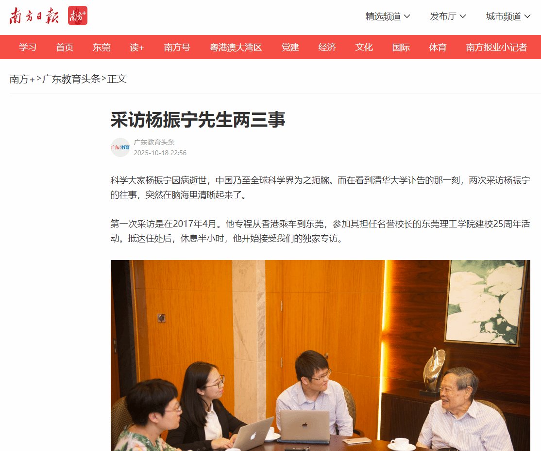 科学大家杨振宁因病逝世,中国乃至全球科学界为之扼腕。而在看到清华大学讣告的那一刻,两次采访杨振宁的往事,突然在脑海里清晰起来了。