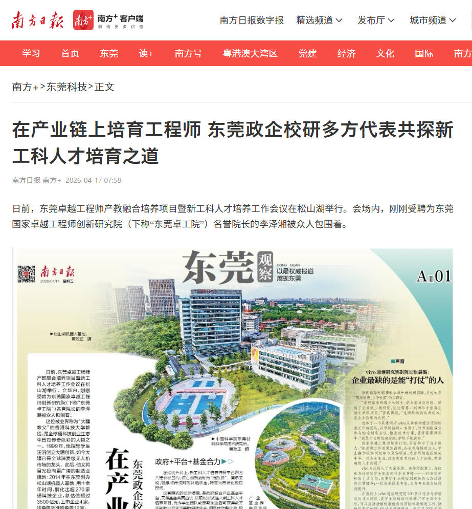 这一机制背后,是东莞作为全国首批国家卓越工程师创新研究院建设城市的战略站位。省教育厅已在东莞等四个产业大市布局产教融合研究生联合培养基地,搭建高校、企业、科研院所协同育人平台。东莞聚焦“机制创新、产教融合、平台赋能”三大方向,目标是为广东乃至全国输出可复制的产教融合“东莞样板”。