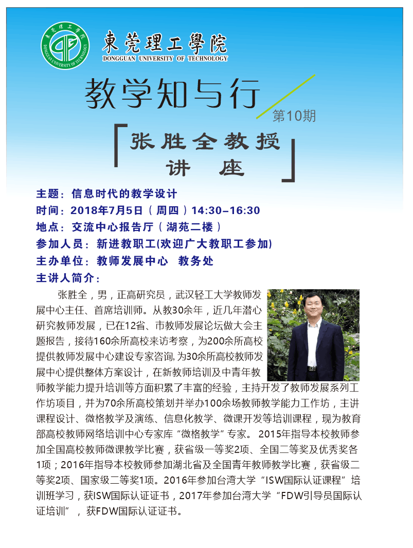 教学知与行第十期:张胜全教授讲座