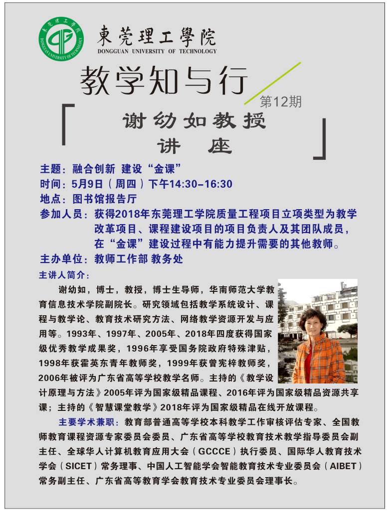 “教学知与行”系列讲座第12期谢幼如教授讲座:融合创新 建设“金课”