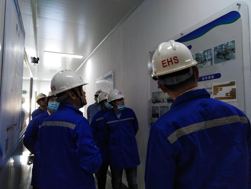 在企业考察环节,我校一行参观了公司新落成的电子化学品浆料、高纯有机溶剂等生产线和相关配套设施。在东莞瑞众新材料科技有限公司的走访参观中,企业负责人现场展示了其按照国际标准要求建设的适应东莞电子信息产业对高端电子化学品需要的电子化学品生产车间。