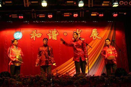 新年酒会后,全院教职员工在大礼堂里欣赏了一台精彩的文艺演出。