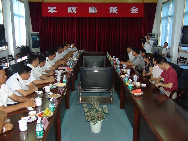 拥军慰问团受到了部队官兵的热烈欢迎。南海舰队某训练基地苏云太司令、许益阳政委和基地全体官兵列队欢迎慰问团的到来。部队、院校双方欢聚一堂,共话鱼水情谊。大家就如何开展好学生的军训和爱国主义教育等方面的工作进行了深入的交流,并表示要加强部队、院校的合作,为东莞争创“全国双拥模范城”作出贡献。最后,戴炳源副院长东莞理工学院城市学院党委副书记朱冰分别代表东莞理工学院和城市学院向部队赠送了慰问金。