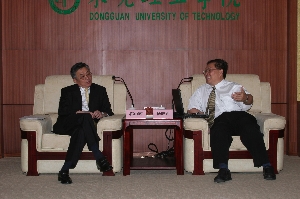2006年6月28日,东莞台商协会会长郭山辉先生在东莞市台湾事务局局长何跃沛等有关负责同志的陪同下,前来我院访问交流,受到东莞市委副书记兼学院党委书记刘树基、院长杨晓西等的热情接待。 宾主间就双方的合作进行了富有建设性的意见交流,认为双方在许多方面存在合作的可能,尤其是家具设计专业的学生实习、科研合作等方面。双方希望开展经常性的交流,增进友谊,不断开展合作。
