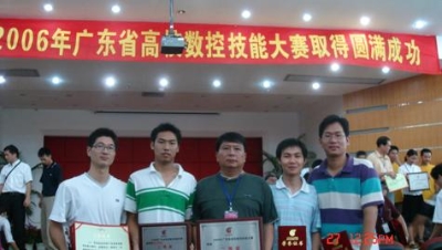 为了提高高校数控技术教学水平和加快数控技术人才培养进程,广东省教育厅和劳动厅于2006年6月22-27日在深圳职业技术学院联合主办了“广东省高校数控技能大赛”。 此次比赛分教工组和学生组,其内容包括理论知识、计算机三维建模与仿真、CNC操作加工三个部分。