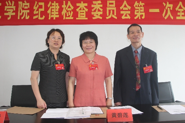 今日上午11时,中国共产党东莞理工学院纪律检查委员会举行了第一次全体会议。新当选的中国共产党东莞理工学院第一届纪律检查委员会委员邓耀林、汪璟(女)、黄碧莲(女)(按姓氏笔画排列)三位同志和东莞市委组织部副部长陈柏南同志参加了会议。 会议选举并经中国共产党东莞理工学院第一届委员会通过,产生了中国共产党东莞理工学院第一届纪律检查委员会书记和副书记,名单如下: 书 记:黄碧莲(女) 副书记:邓耀林 委 员:汪 璟(女)