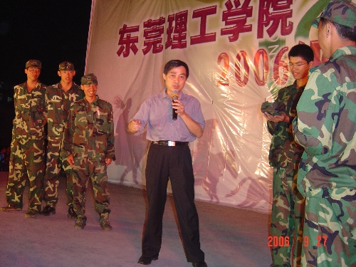 9月27日晚上,东莞理工学院2006级新生军训文艺晚会隆重举行。出席晚会的有院党委副书记王江水,党委副书记、纪委书记黄碧莲,副院长、军训领导小组组长戴炳源以及军训团的所有成员和各系辅导员。