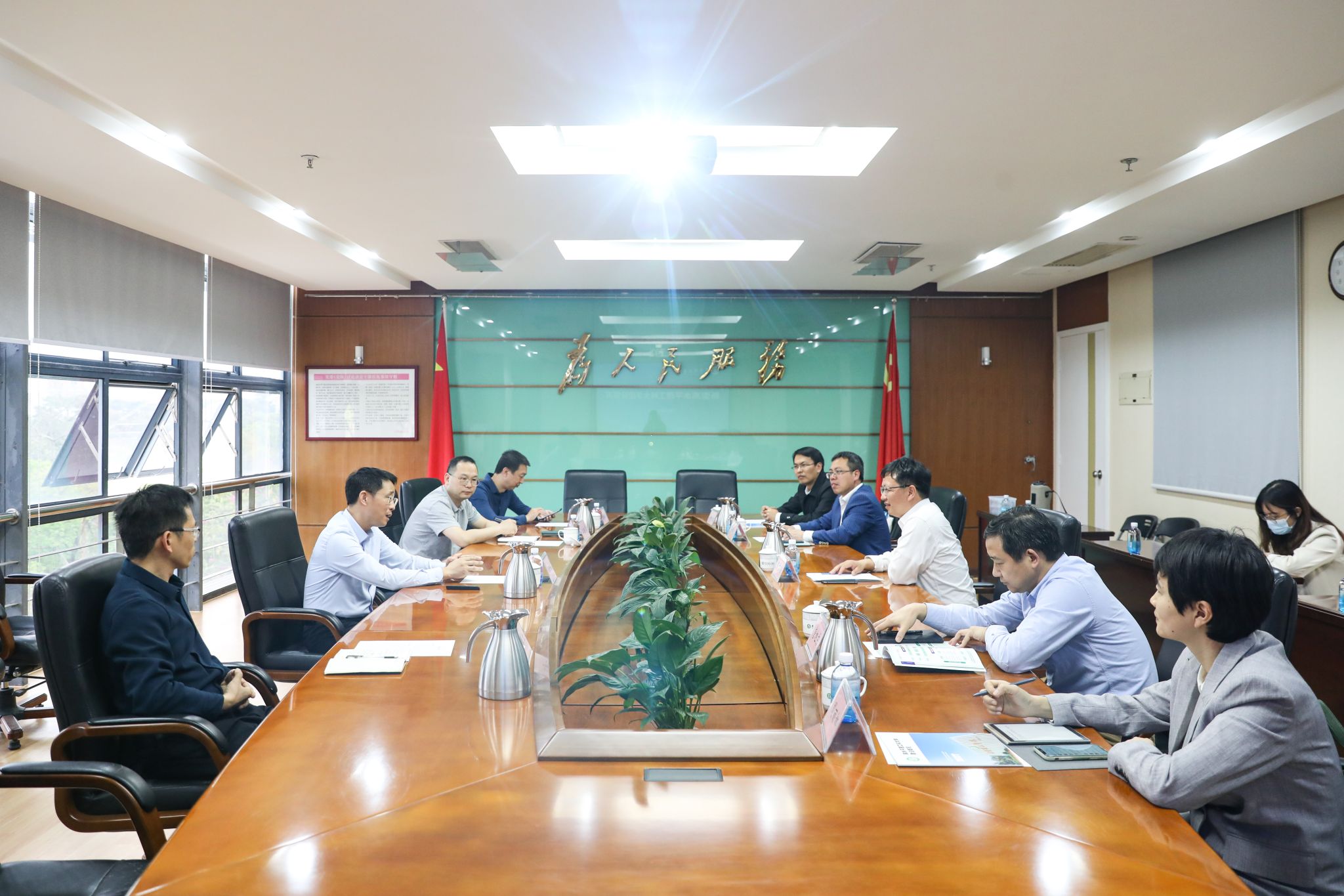 邵千钧一行先后参观了我校科技创新研究院、智能制造创新中心、中子探测器联合实验室、广东省城市生命线工程智慧防灾与应急重点实验室,并前往现代产业学院教学实践区和机械工程学院参观粤港机器人学院和数字装备工程训练中心。随后,双方在行政楼A407进行座谈,并围绕人才培养、科研创新、学科建设等多个方面进行深入交流。