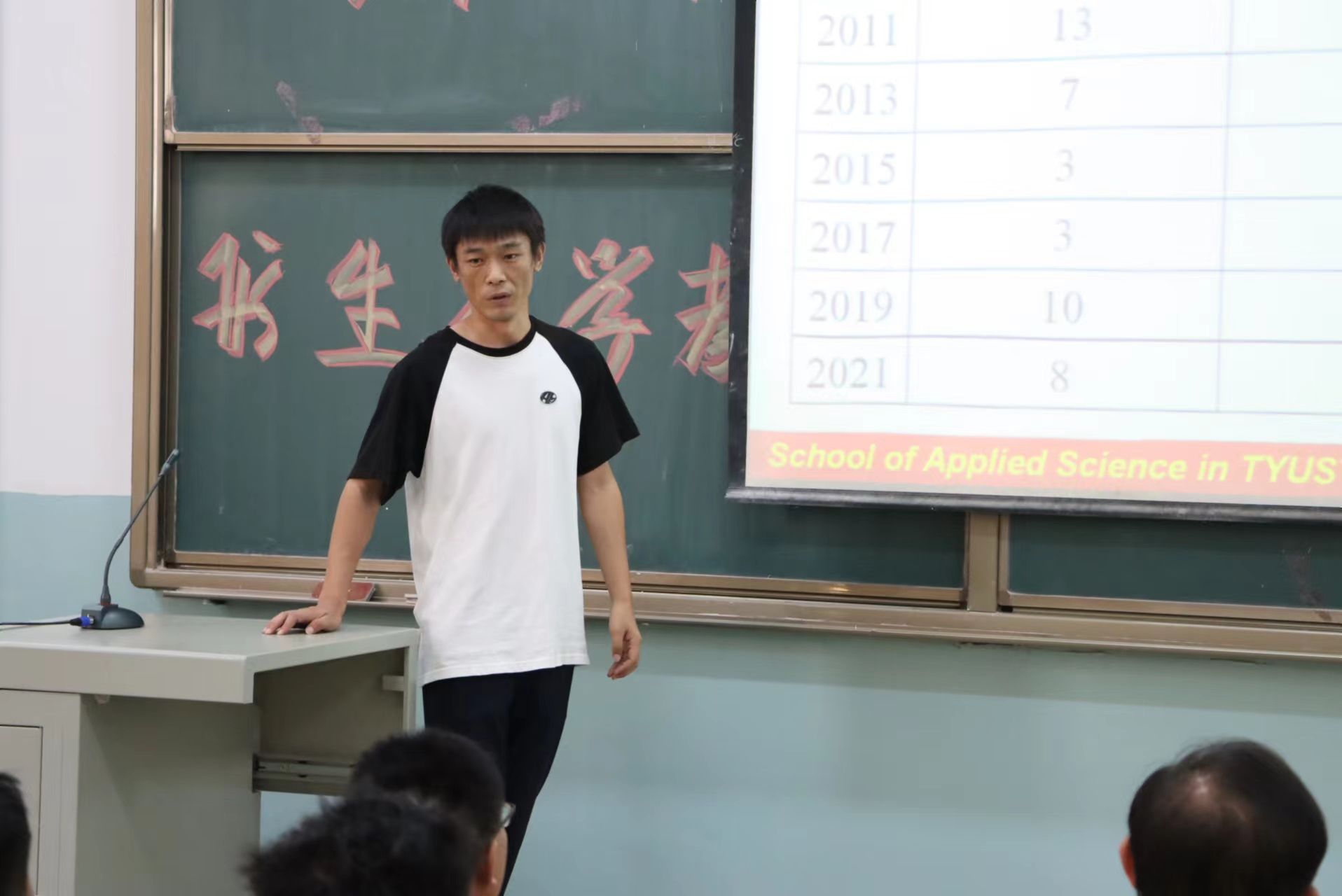 光电信息科学与工程专业由学院党委副书记王志社代表发言,他强调,大学不仅要丰富学科知识,班级考核内容和学生活动也更加多样;要想更好地融入大学生活,必须认真学习,积极参加各项活动。随后,由孟帅老师进行了本专业的介绍以及就业前景。