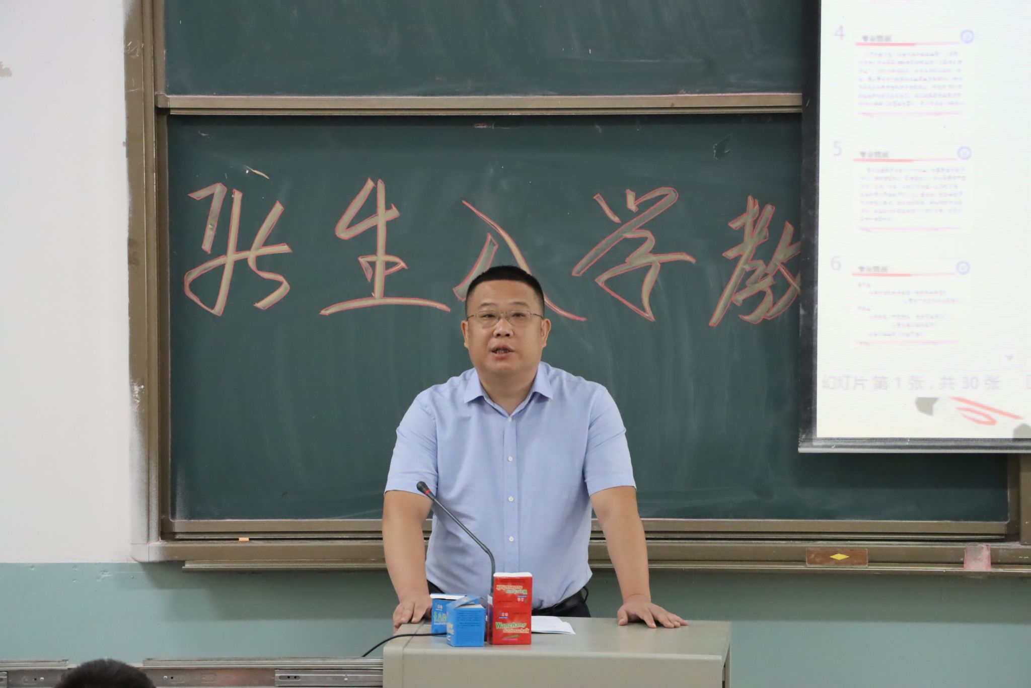 学院党委书记彭英在本次入学教育现场作了热情的开学致辞,对新生们提出了新的希望与要求。紧接着青年教师代表王进斌副教授发言和教授代表杨斌鑫教授发言。随后,崔学英老师和刘斌老师分别对两个专业进行了初步介绍、课程安排以及该专业的就业前景,希望同学们加强自我学习能力。最后,2020级优秀学生代表姜旭磊发言,希望同学们扩大自己的学习视野,努力学习。