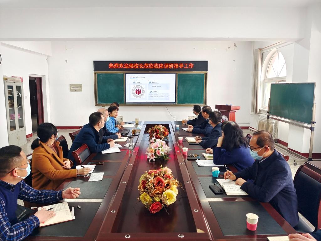 王希云院长首先代表学院对侯校长莅临学院调研指导工作表示热烈的欢迎,并从学院概况、师资队伍、本科教学、国际合作交流、存在问题及下一步工作思路六个方面向侯校长进行了汇报。