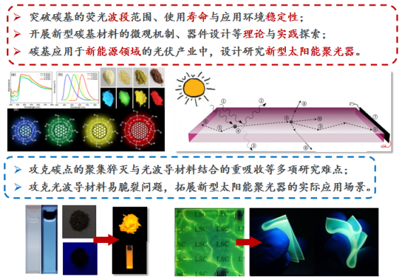 该方向在新型电池、量子点发光,柔性显示等光电材料和技术领域进行了深入的研究,提出了电极材料,LED封装和键合及量子点发光调控等的优化设计,内在机制及技术工艺路径,有效解决了阴极氧化导致电池寿命、封装导致光效和稳定性以及碳量子点高效全色发光等难题,尤其是在电池阴极防护层材料结构优化,FOLED键合技术及碳量子点多色发光及固态化工艺等方面取得重大技术进展。形成了服务于山西绿色能源高效化的光电产业发展特色与优势。