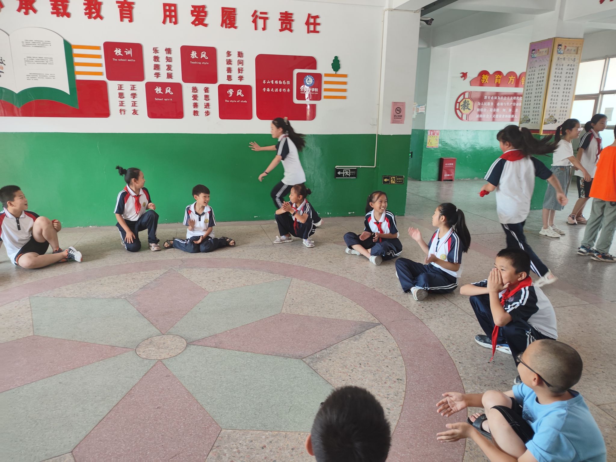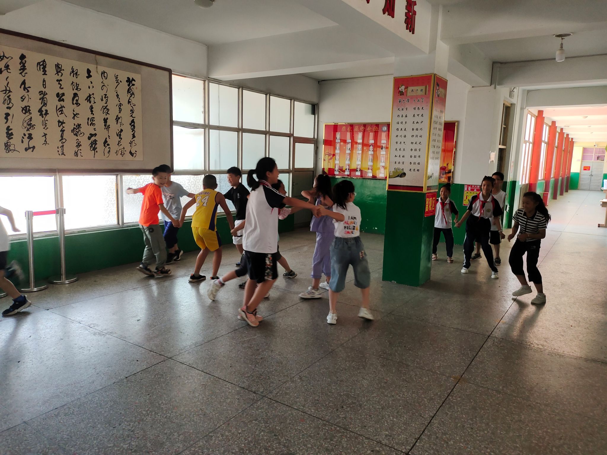课间活动时间,实践团成员们寓教于乐,带领孩子们在校园里进行了“撒网捕鱼”、“凑钱”、“丢手绢”等互动游戏,孩子们在游戏中熟悉了我们的队员,融入到我们的活动中来。