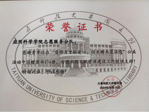 人行其善、物尽其用,旧物微薄、仁爱不尽。活动现场,捐赠衣物的同学络绎不绝,大家纷纷来传递温暖,把衣物化为爱,献出自己的一份力量。志愿者们分工明确,各司其职,热情地接收每一位捐赠者送来的衣物和书籍,为捐赠者进行登记并分类整理。活动后将所捐的174册图书赠与太原科技大学图书馆并受到表彰,衣物赠与了贫困山区儿童。