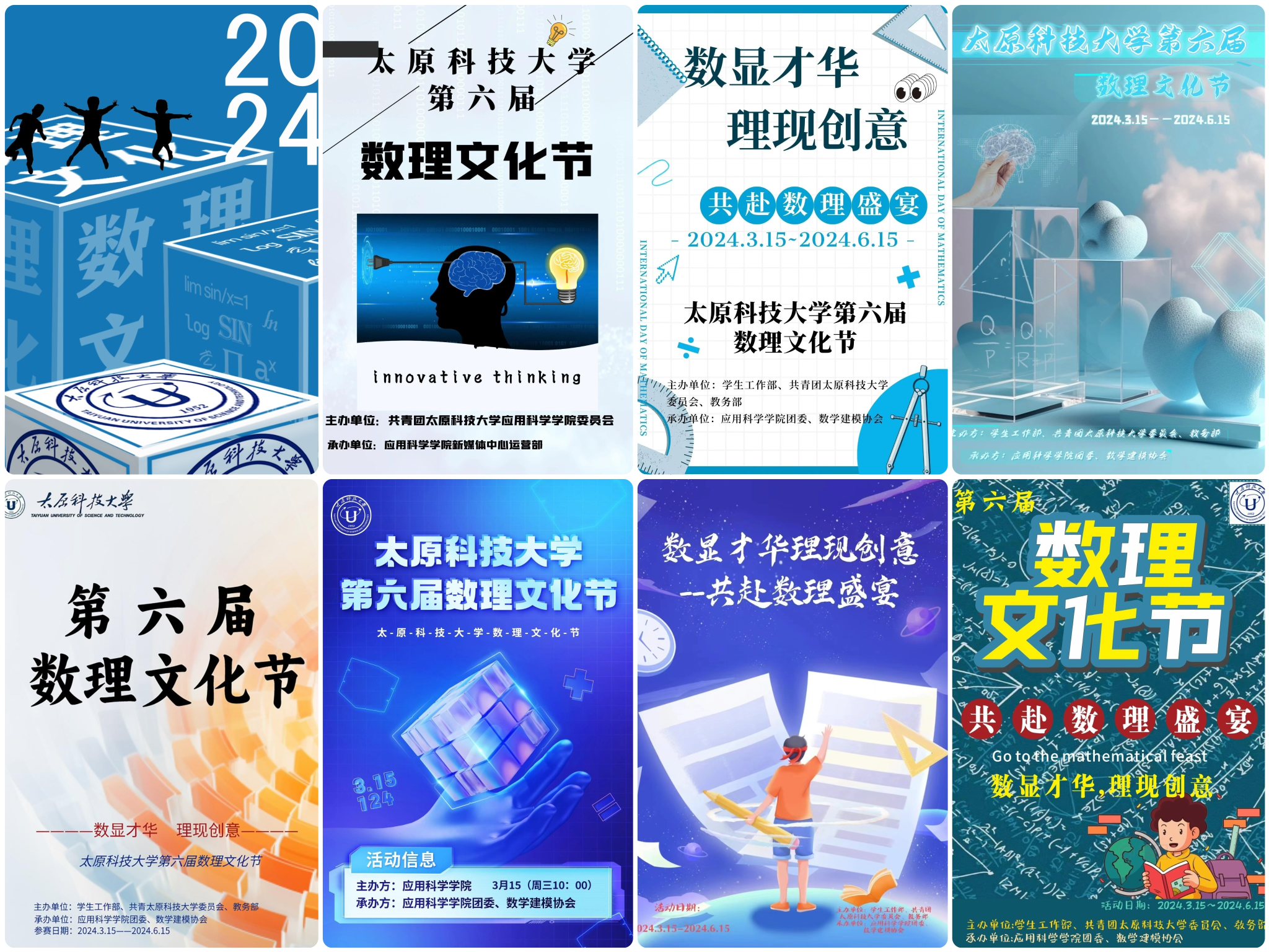 为有效宣传即将到来的第六届数理文化节,提升同学们对数理文化的兴趣,促进数学思维和文学素养的发展,2024年3月11日—3月13日,应用科学学院团委举办了以“数显才华,理现创意——共赴数理盛宴”为主题的创意海报设计大赛。