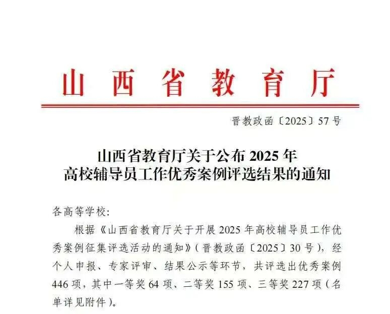喜报!我院辅导员在2025年山西省高校辅导员优秀案例评选中荣获佳绩