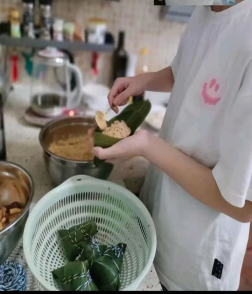 包真粽子的环节更是热闹非凡。参与者们认真学习包粽子的技巧,从最初的“形状各异”到逐渐掌握要领,一个个漂亮的粽子在手中诞生。许多同学还与家人一起动手,在包粽子的过程中增进交流,其乐融融的氛围让传统节日更添温情。