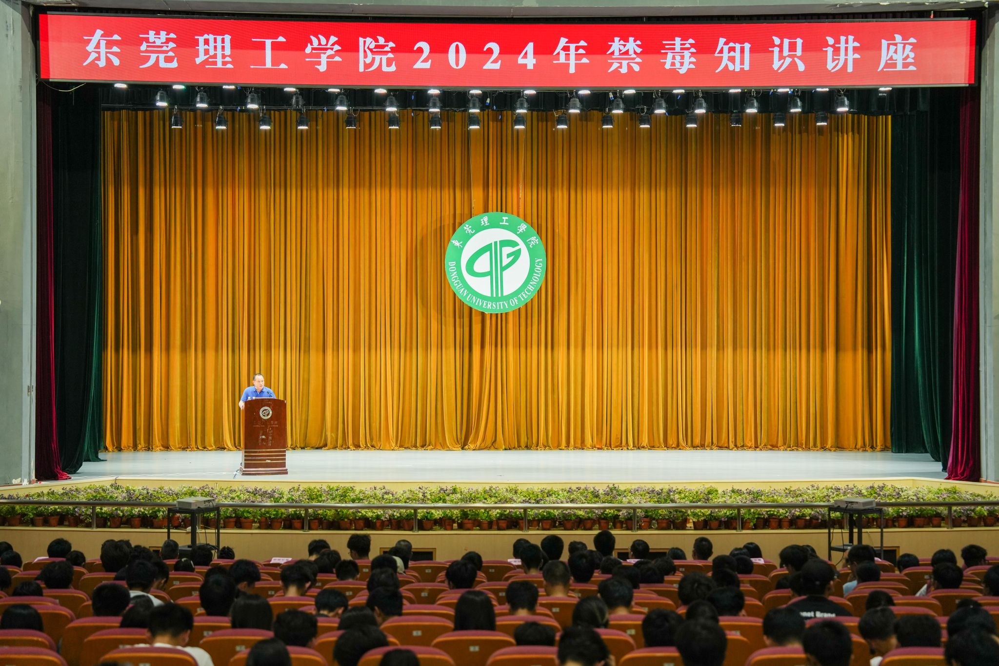 为深入贯彻国家禁毒方针,提升师生对毒品危害的认识,增强自我保护能力,结合我校虎门健康青年“百千万工程”突击队实践成效,9月26日,我校联合虎门禁毒办、松山湖禁毒办开展“健康人生,绿色无毒”禁毒知识讲座。虎门禁毒办专职副主任邓灼成,松山湖禁毒办专职副主任梁灿荣,东莞理工学院安保部部长黄辉、生命健康技术学院党委书记谢炯标以及1200名在校生参加了此次活动。