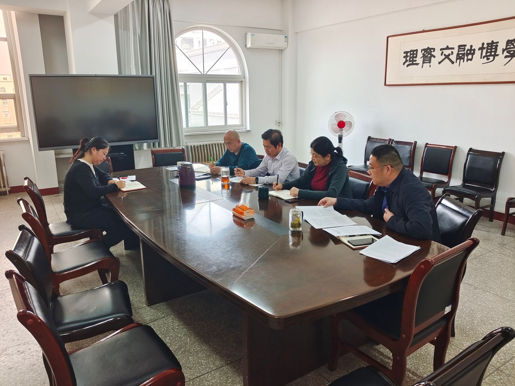 2024年3月26日下午,应用科学学院在学院会议室召开新学期思想政治教育工作研讨会。院党委书记彭英、院长林金保、院党委副书记王志社、副院长杨斌鑫、院办主任郝玮、团委书记杜晓芬参加了本次研讨。