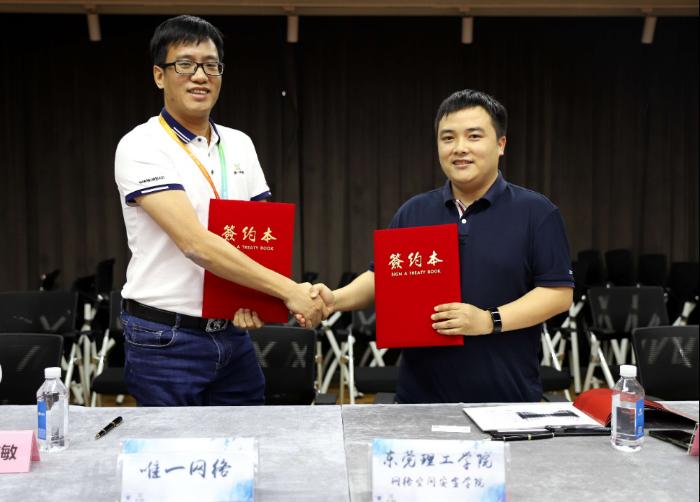 11月12日,东莞理工学院网络空间安全学院与广东唯一网络科技有限公司举行了教学实习基地签约授牌仪式,并成功签署战略合作协议。网安学院副院长敖欣与唯一网络董事长特助王毓敏代表双方签署了战略合作协议。