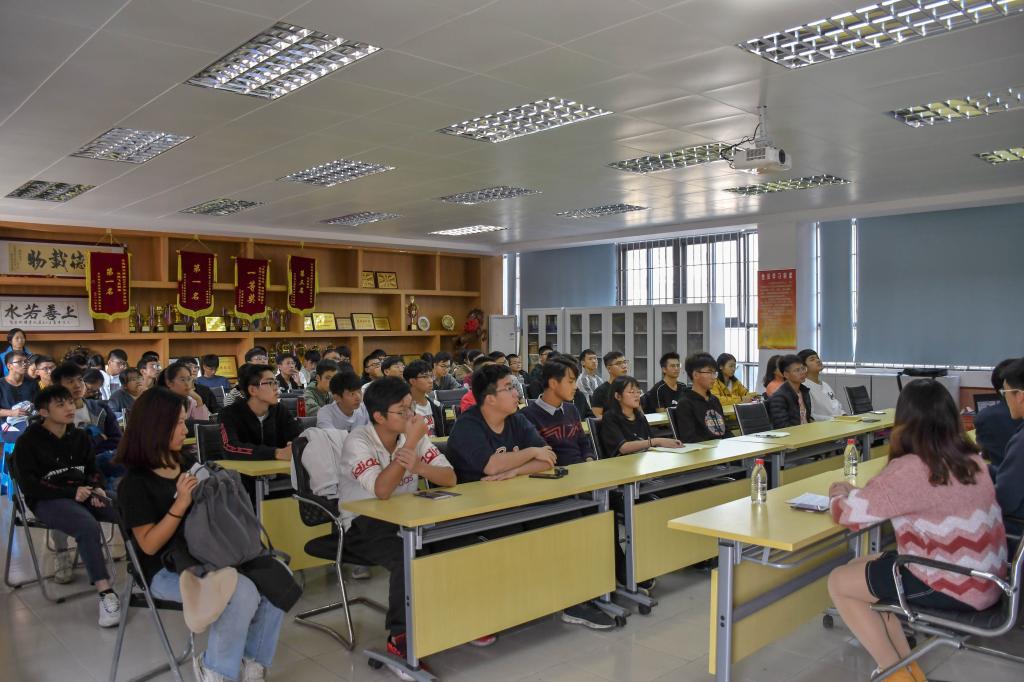 16级能源专业杨容澜曾担任学校KAB创业俱乐部主席,两次参加省赛。她在会上分享了往届大赛当中的优秀创新创业项目,说明寻找行业痛点和发展创新思维在创业项目当中的重要作用,告诫同学们要用敢为天下先的勇气,突破自己,用无悔的青春,来创出一条有别于他人的创想之路。