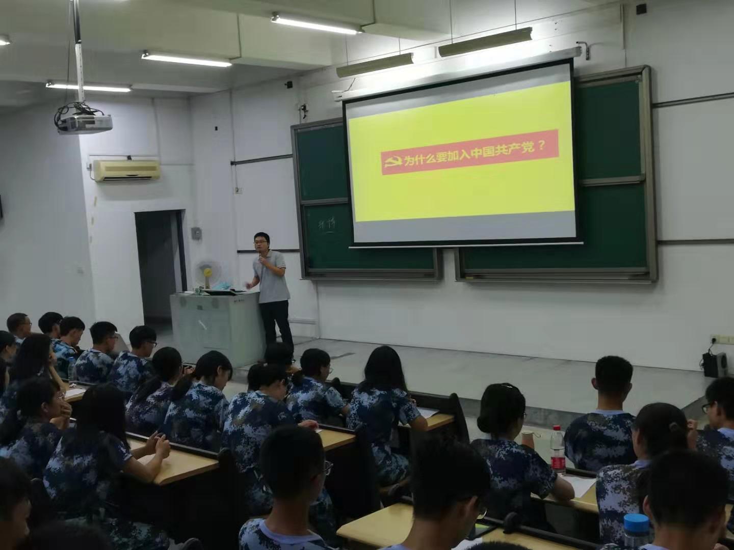 2019年9月5日晚上,化能学院于6E208开展2019级新生“知党爱党”主题党课,此次党课由应化与食品学生党支部书记张博主讲。