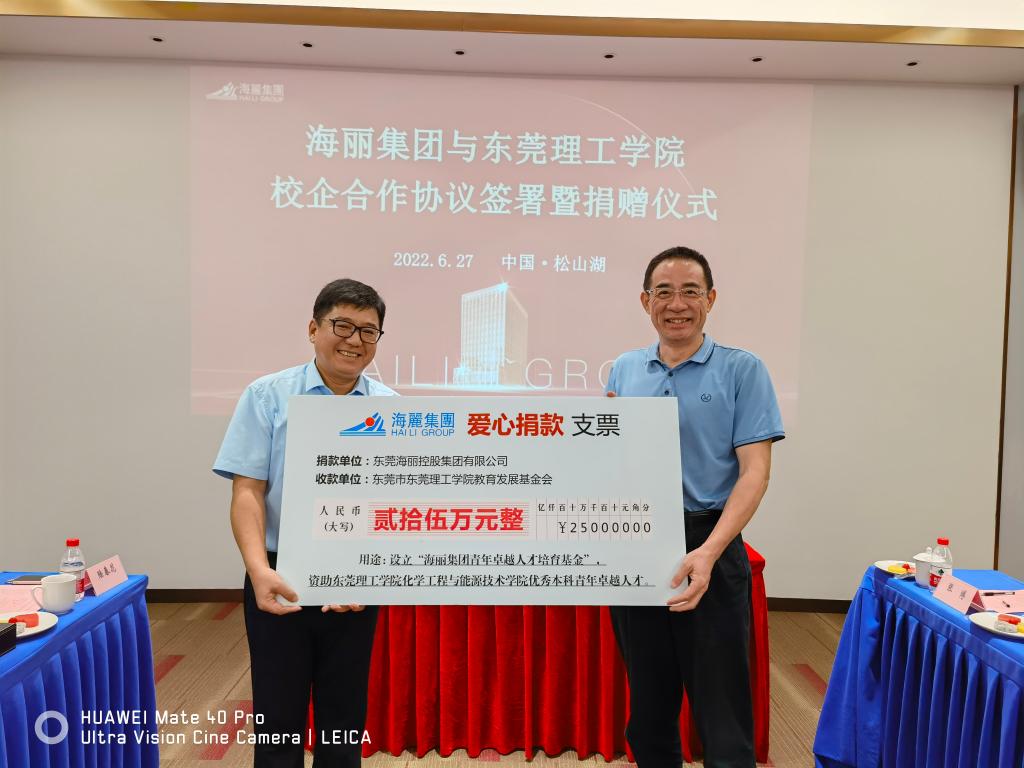 6月27日,东莞海丽控股集团有限公司与我校校企合作协议签署暨捐赠仪式在松山湖海丽大厦举行。海丽集团捐资在我校设立“本科青年卓越人才培养基金”。当日,学校党委委员、副校长杨敏林带队前往东莞海丽控股集团有限公司走访调研,对接企业需求,推动产教融合、深化校企合作。海丽集团总经理徐小军率公司高管带领大家参观了公司展厅并详细介绍了公司发展历程及最新研发成果。