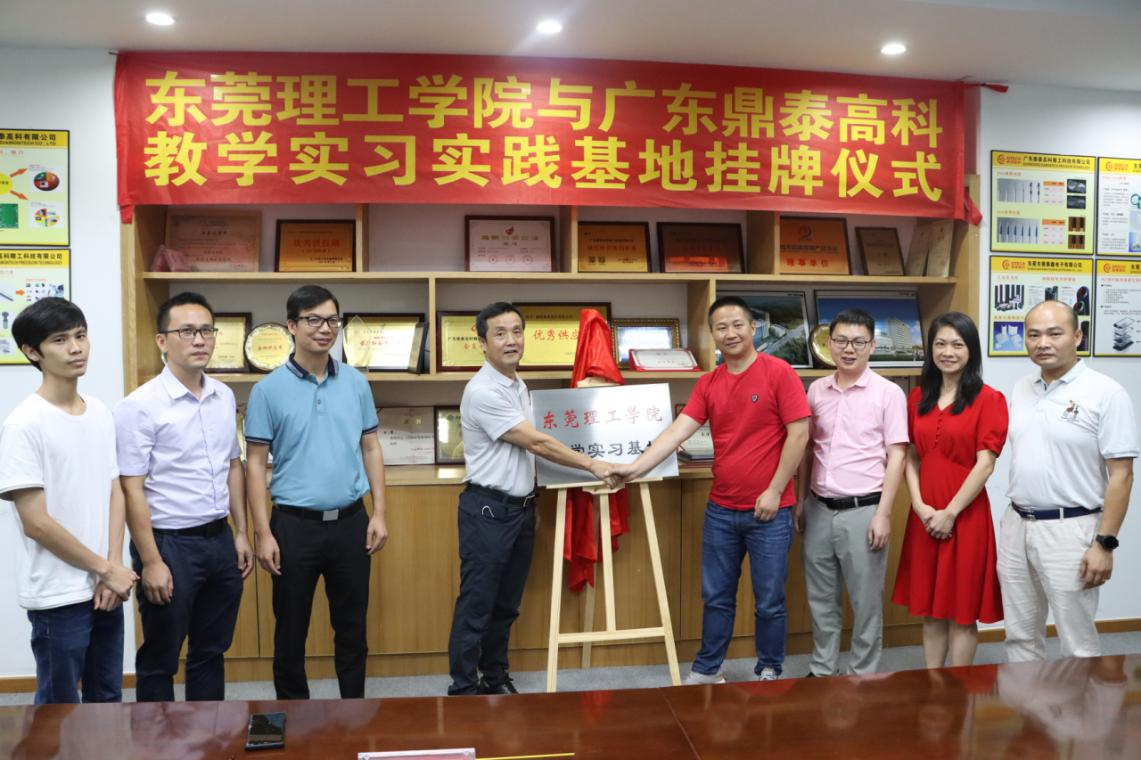 为了更好地服务东莞市新材料产业,培养应用创新型人才,材料学院教师深入东莞市厚街开展产学研合作。6月4日,材料学院与广东鼎泰高科技术股份有限公司、东莞广泽汽车饰件有限公司举行了教学实习基地签约与挂牌仪式。厚街镇委委员吴文剑,厚街经济发展局副局长方闰妃以及厚街镇科技局工作人员,我校材料学院书记君光、副书记陈礼明、高分子系副主任李坤泉、谢华理博士等参加活动。