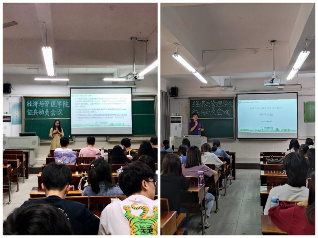 为深入贯彻落实国家和省、市2021年征兵工作会议精神,高标准完成“一年两征”任务,宣传普及国防知识,增强学生国防观念,积极动员学院大学生响应祖国号召,自觉接受祖国挑选,应征入伍,近日,经济与管理学院以多种举措开展征兵宣传动员及国防教育工作。