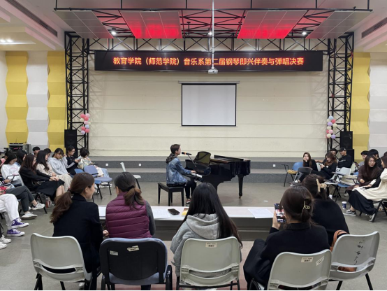 为提高教育学院(师范学院)音乐教育专业学生的钢琴即兴伴奏能力和学习热情,12月10日,教育学院(师范学院)第二届钢琴即兴伴奏与弹唱比赛决赛在演奏厅举行。