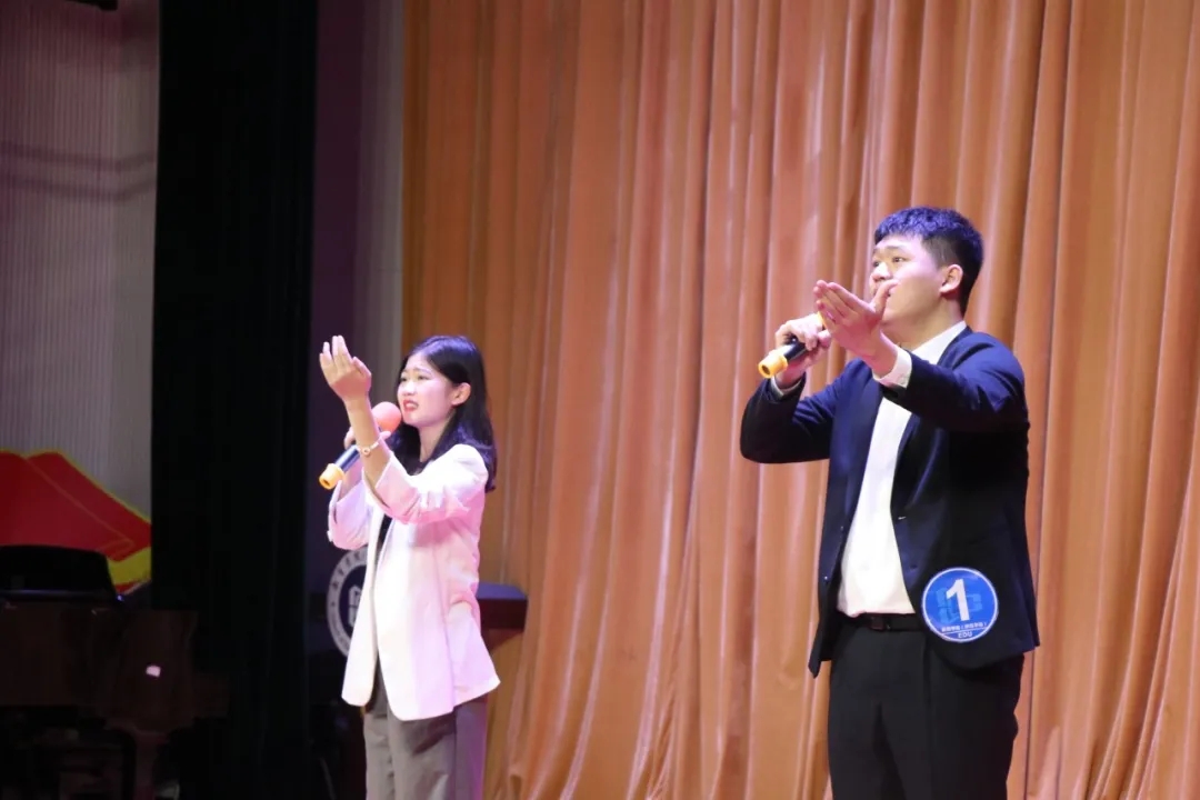 比赛现场气氛热烈,参赛选手们以饱满的激情、激昂的诗句带领全场观众一起感受朗诵的艺术和魅力。暖场游戏环节,同学们情绪高涨,积极参与到诗词飞花令的游戏中。在选手们朗诵完毕后,李樱从文本美、情感美、表达美,进行了细致的点评。杨万江也激情朗诵了一首《将进酒》。