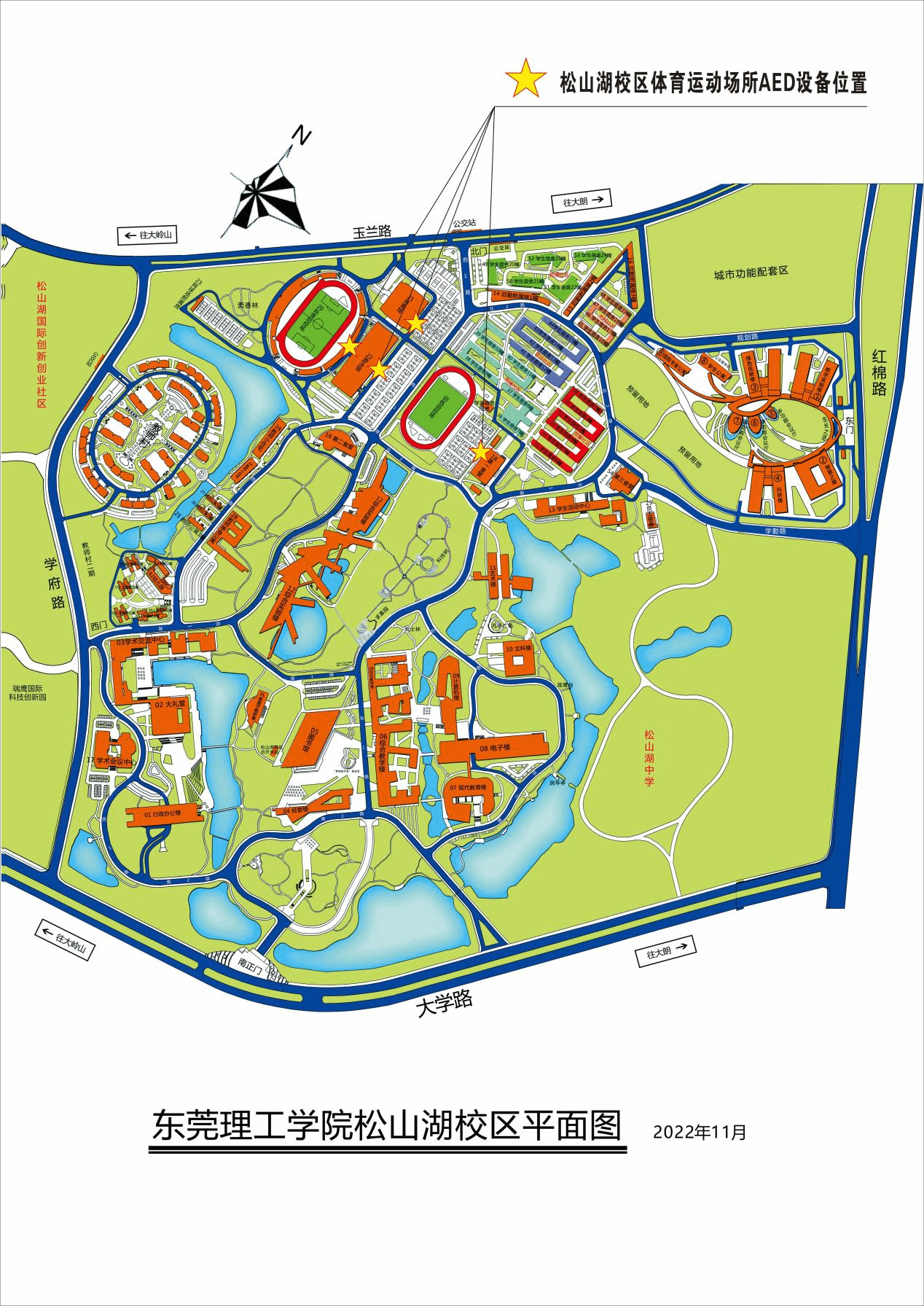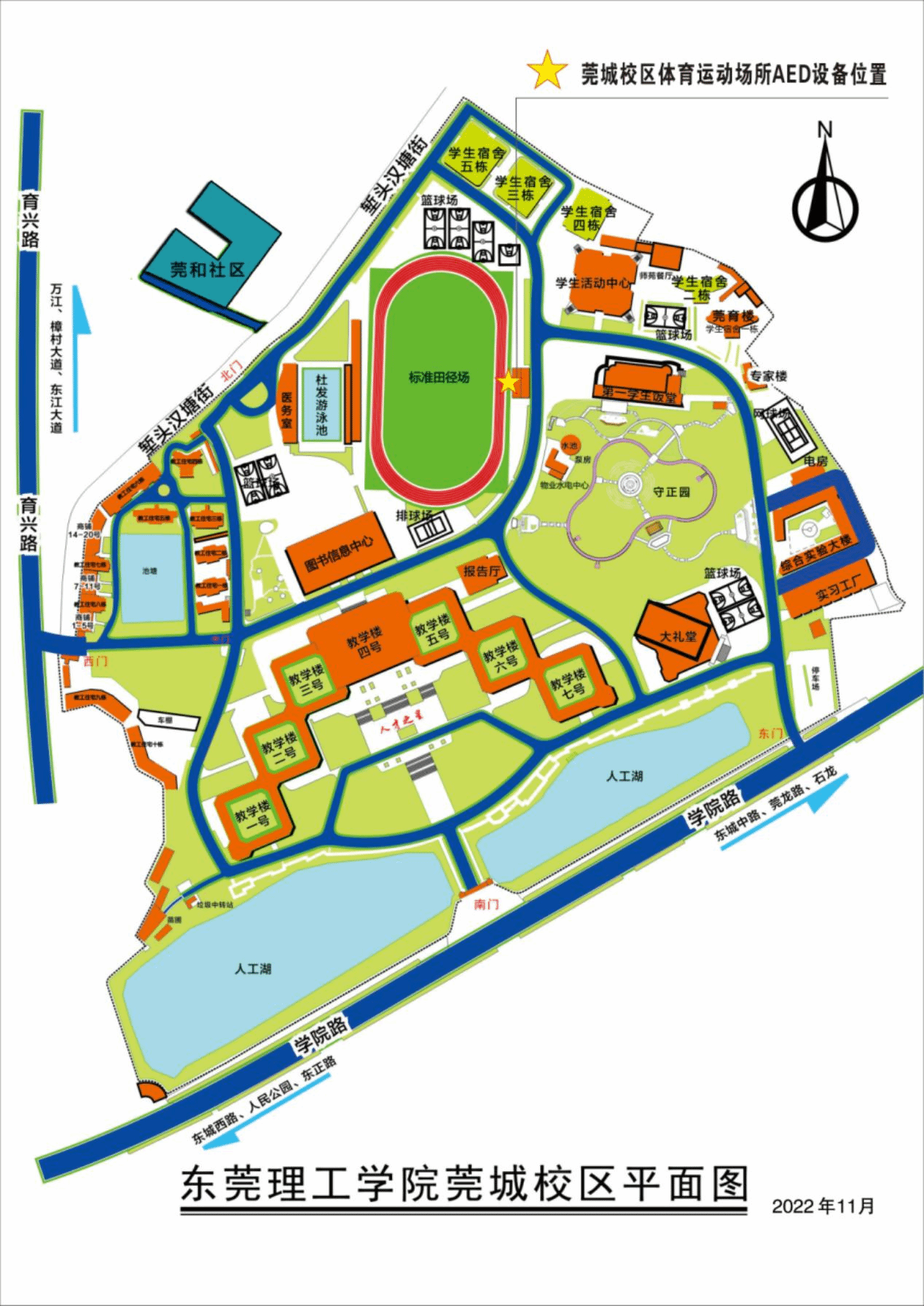 为科学部署,使仪器保障范围最大化,教育学院(师范学院)经现场考察、多方论证,4台设备已分别安装在莞城校区田径场主席台、松山湖校区假草体育场篮球场旁、松山湖校区真草田径场东入口、松山湖校区体育馆东侧门(具体位置见图片)。截至目前,我校体育运动场所已配置5台AED自动体外除颤仪(原有一台位于松山湖校区游泳馆通道入口处),覆盖面积得到有效扩大。
