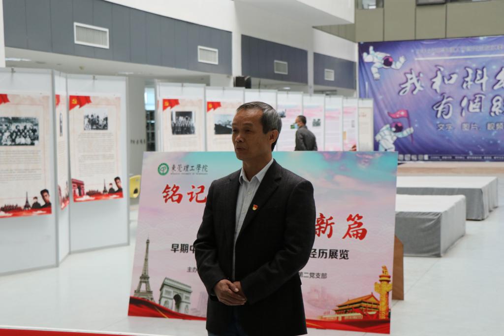 在启动仪式上,中法联合学院直属党支部书记、执行院长陈毅华在致辞中表示,莞工中法联合学院是中法两国教育部批准成立的,由东莞理工学院和法国国立工艺学院共同创办的本科教育机构。中法联合学院“铭记峥嵘岁月,书写奋斗新篇”党建展览传承红色基因,以深化中法两国友谊为纽带,寻找两国红色公约数为方向,使广大师生党员铭记旅法勤工俭学运动精神,学会在逆境中顽强奋斗,在斗争中坚毅不屈。从1919年到1920年,赴法勤工俭学者共17批1700多人。这些进步青年中包括了周恩来、邓小平、陈毅、蔡和森、聂荣臻、赵世炎、徐特立等中国无产阶级革命的先驱和新中国的缔造者。一个世纪前的赴法勤工俭学,对于他们个人来说,是一场人生的磨练,是个人思想的蜕变。苦难磨砺斗志,浴火铸造辉煌,在任何时代永不落幕。今天,让我们一起重温早期先辈的留法经历,缅怀先辈们的事迹,不忘初心,砥砺前进,书写时代新的华章。