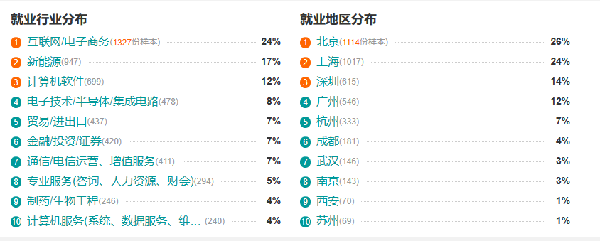 通过6份就业状况调查分析,应用统计学专业平均薪酬水平为8170元/月。