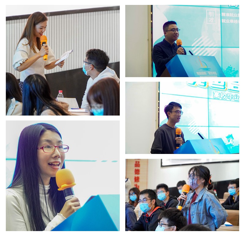 在优秀毕业生代表分享环节,优秀毕业生“见力”项目负责人黄俊业、匠子文化团队李锐填、黎盈君三位同学分别分享了就创业心得和感想。参会同学纷纷表示,最新的就业创业服务政策对我们来说太及时了,相信有这么多优惠补贴及人才服务政策保驾护航,让我们留莞就业创业信心更足了。