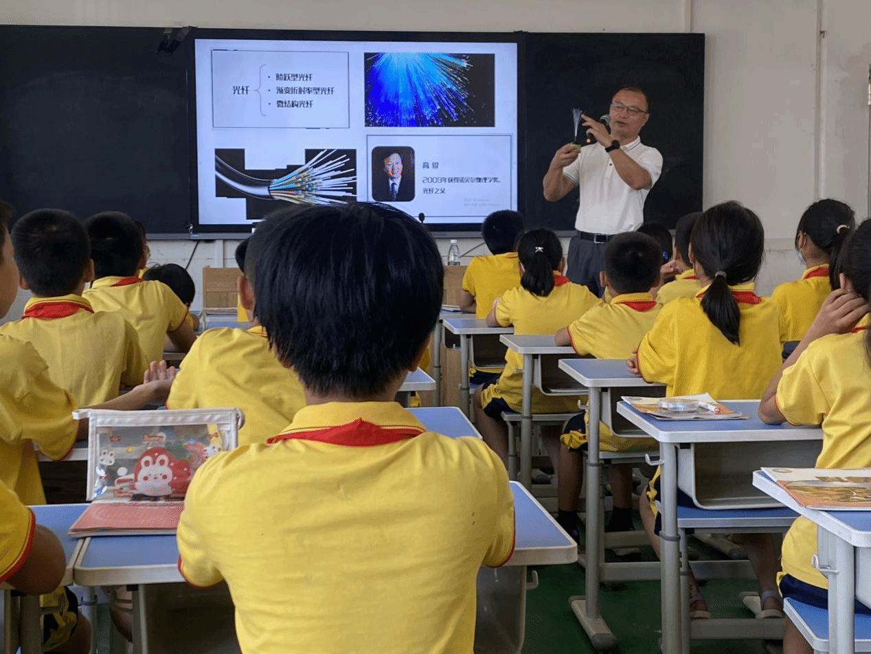 其中,王红成博士带来了科普知识课《神奇的光学世界》,借助有趣的视频以及实验配件让学生们重新认识光,感受光的力量。张洁博士则从国家安全的角度为学生上了一堂深入浅出的思政课,启发孩子们懂得国家安全的重要性,懂得国家安全需要每一位华夏子女去守护。黄晓园博士带来了趣味光电实验的特色课,采用视频播放+实验体验+互动式讲授的方式,激发孩子们的兴趣,让他们对生活中的光电现象有着和以前不一样的了解。